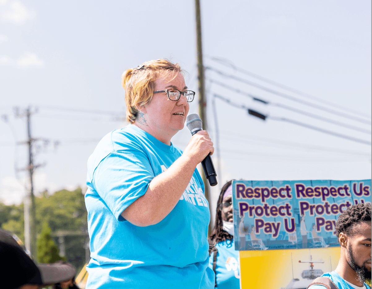 I work at Charlotte Douglas International Airport, one of the busiest airports in the south and one of the most profitable airports for American Airlines. I work hard cleaning American Airlines cabins and making sure they are free from weapons or other hazards, but I’m just not paid enough to get by in Charlotte. Until recently I was living out of my car, and right now I stay at a Motel 6 with my fiance. I know it can be better than this, and that’s why I joined with my coworkers in a union. We’re here to demand accountability from our employers and their clients–all the airlines like American–– and to demand the respect and pay we deserve.