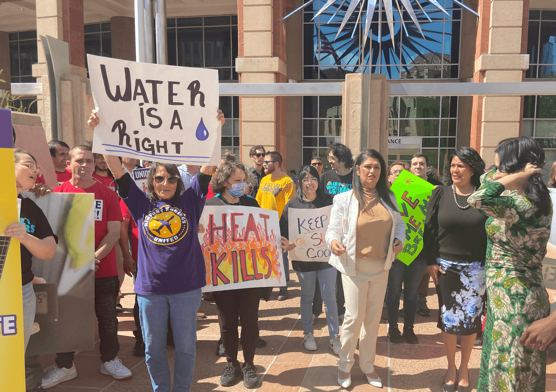 It’s so simple. But someone – our employers, the city or the airlines – who controls our workplace conditions, needs to ensure ALL workers are safe from the heat.